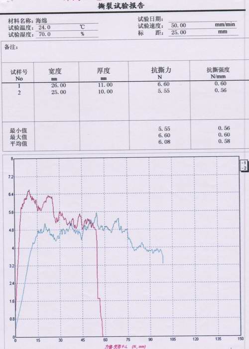 海棉拉伸撕裂試驗報告內容:①抗撕力 ②抗撕強度