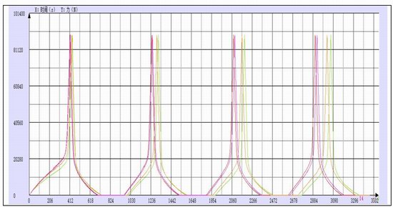 該用戶為某彈簧墊圈生產企業。試驗時用速度1mm/min加載到88.96kN,力值再卸載到0N,重復3次;再用速度1mm/min加載到88.96kN,到88.96kN時這個力值位移為起點,卸載力值,位移(變形)0.76mm時,試驗結束,記錄該點的力值。(該力值命名:反彈率)